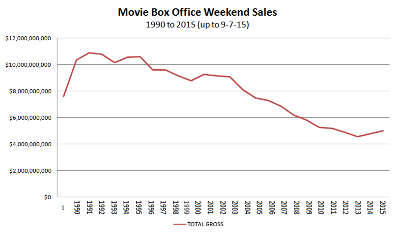 Movie box office sales 1990 to 9-7-15. See http://www.boxofficemojo.com/yearly/